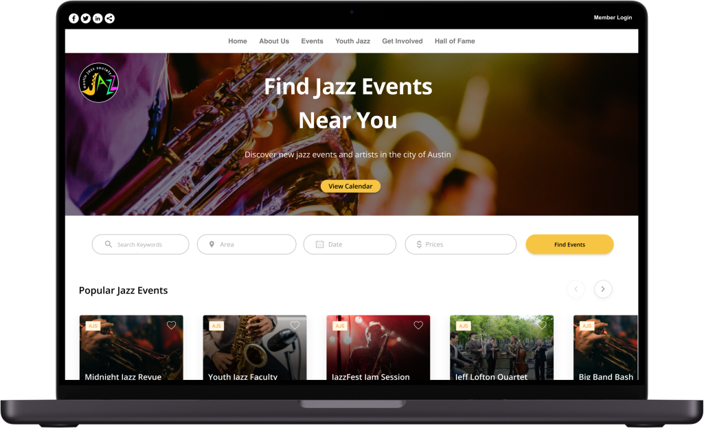Redesigned Austin Jazz Society’s website to make events easier to find, help performers market their shows more effectively, and create a more modern, welcoming experience